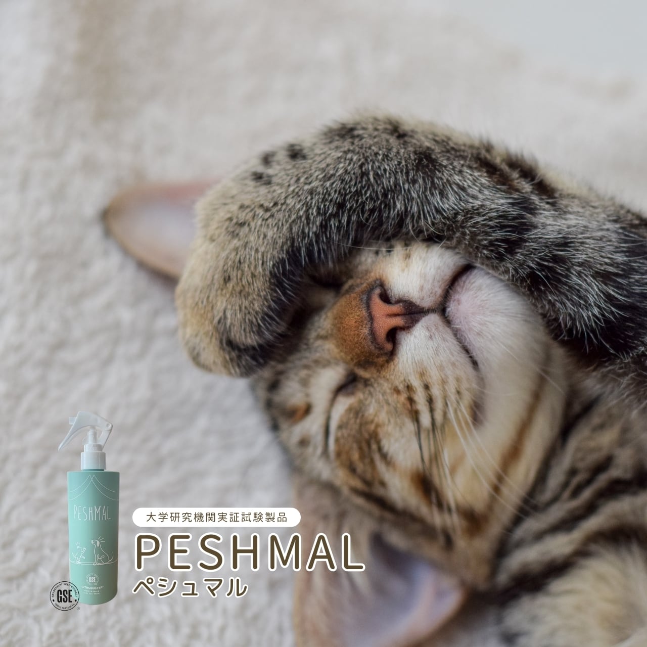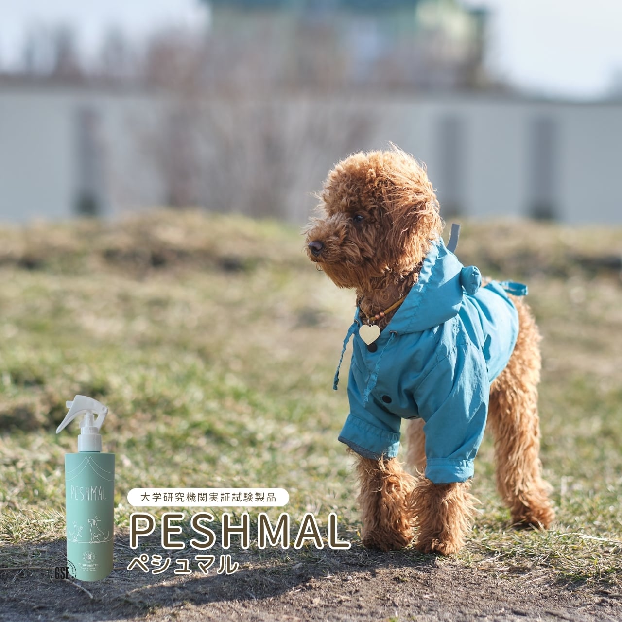 ペシュマルは、100%天然成分由来で作られた、わんちゃんやねこちゃんの全身に使用できる抗菌&除菌・抗ウイルス洗浄液です。